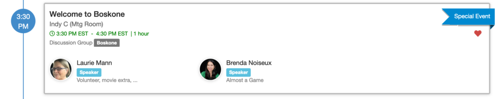 We have used the Grenadine database to build our program for years. Most of our members have used it to set up personalized schedules in the past and to get live program updates on their phones and laptops during the con. Now, we’ll be using it as our single sign on platform for virtual Boskone 58, which means that all you have to do is purchase your membership and log into the event platform to access everything.