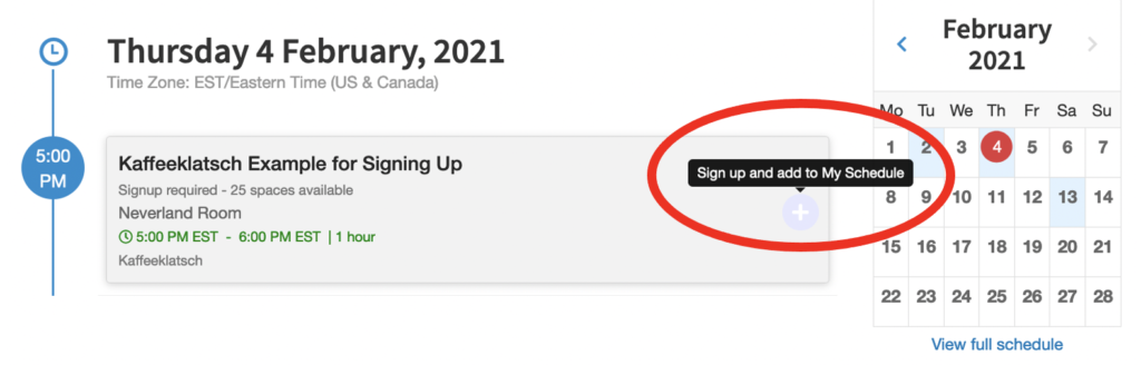 This post has been edited to include images related to signing up for a kaffeeklatsch.