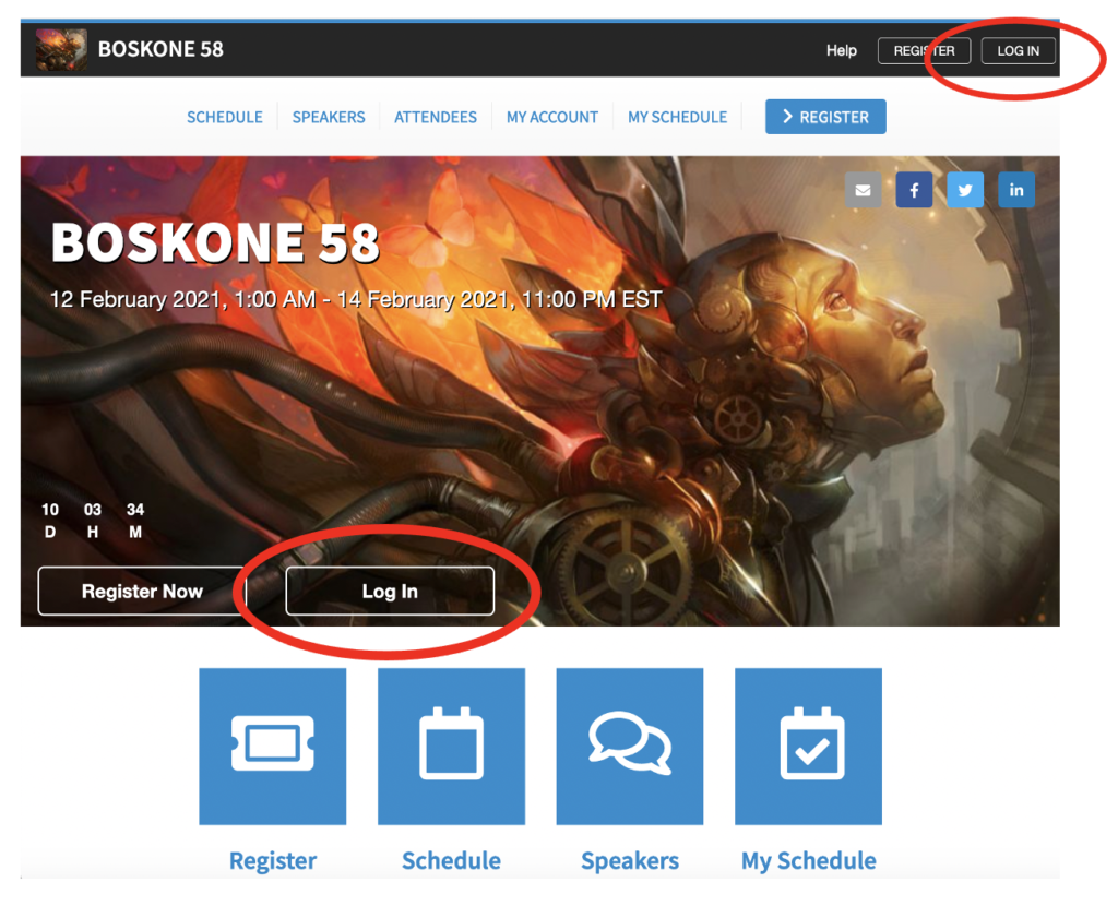 To help you know what to expect when logging into the Boskone event platform, here are some Login Quick Tips, which will be useful since many pages have content that is publicly viewable and you may think you are logged in because you can see certain information.